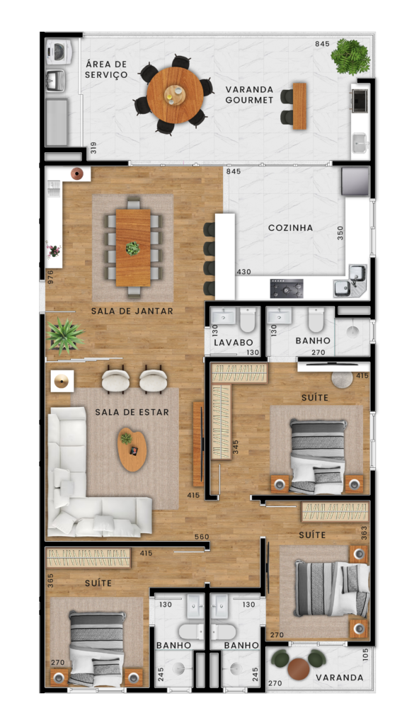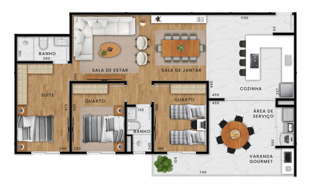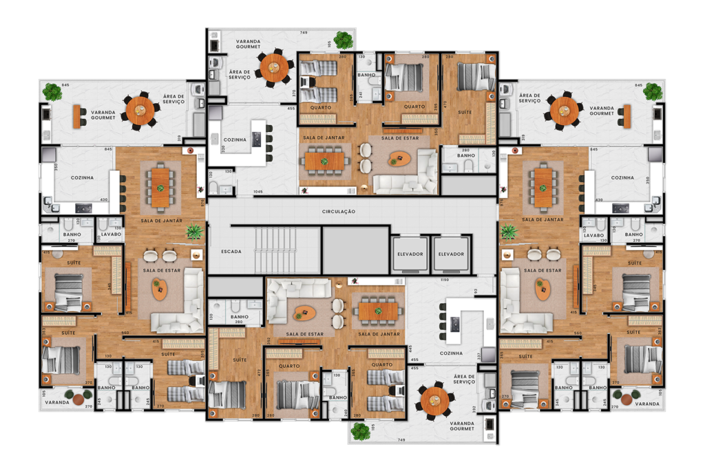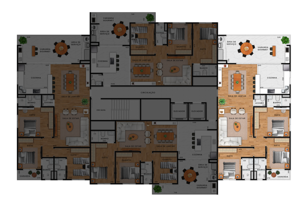 * O mobiliário e artigos decorativos nestas imagens não fazem parte dos imóveis e empreendimento